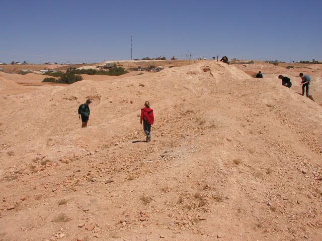 Der blev lavet et lille forsøg på at finde opaler i resterne af noget opgravet materiale fra minerne. Det lykkedes ikke, men vi fik en masse støv med os.
