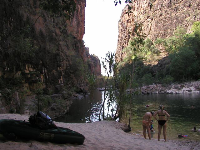Man skal svømme de sidste 500 m. op til Twin Falls, så vi havde taget en luftmdras med til unger og bagage.