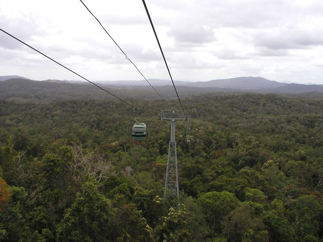 Svævebanen er godt 7 km. og går hen over regnskoven, så der er masser af træer at kigge på.