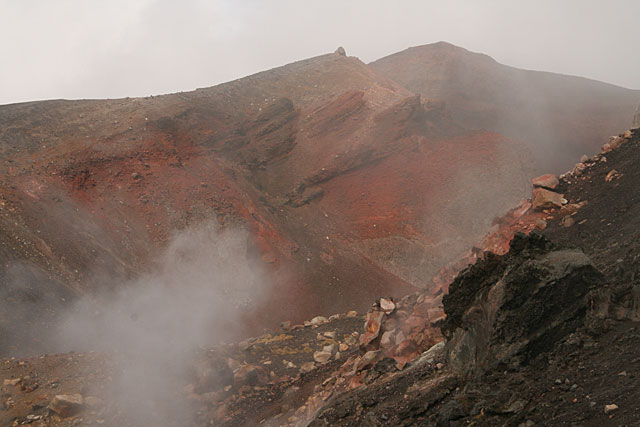Det lykkedes også at få et glimt af det røde krater, der selv producerede en del af den tåge, der lå over den.